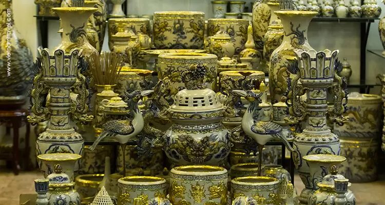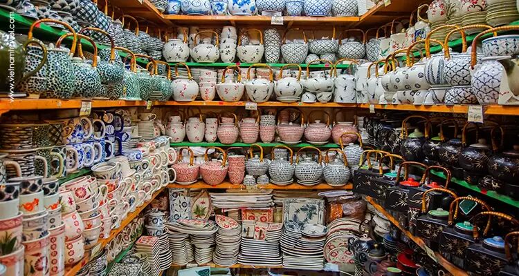 13:40 : The boat arrives at Bat Trang wharf , you go to visit and shop for souvenirs at Bat Trang pottery village with sophisticated techniques.